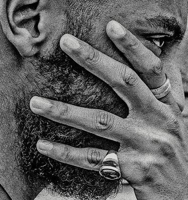 Metropolis Gold is a project that explores the intensity and resilience of urban life through a refined digital chiaroscuro technique inspired by classical painting. Each image is crafted with strong contrasts of light and shadow, creating an effect that emphasizes the features and textures of the faces, almost sculpting the subjects in space. The deep shadows and intense highlights add a dramatic dimension, revealing details and imperfections as testimonies of the subjects' experiences.