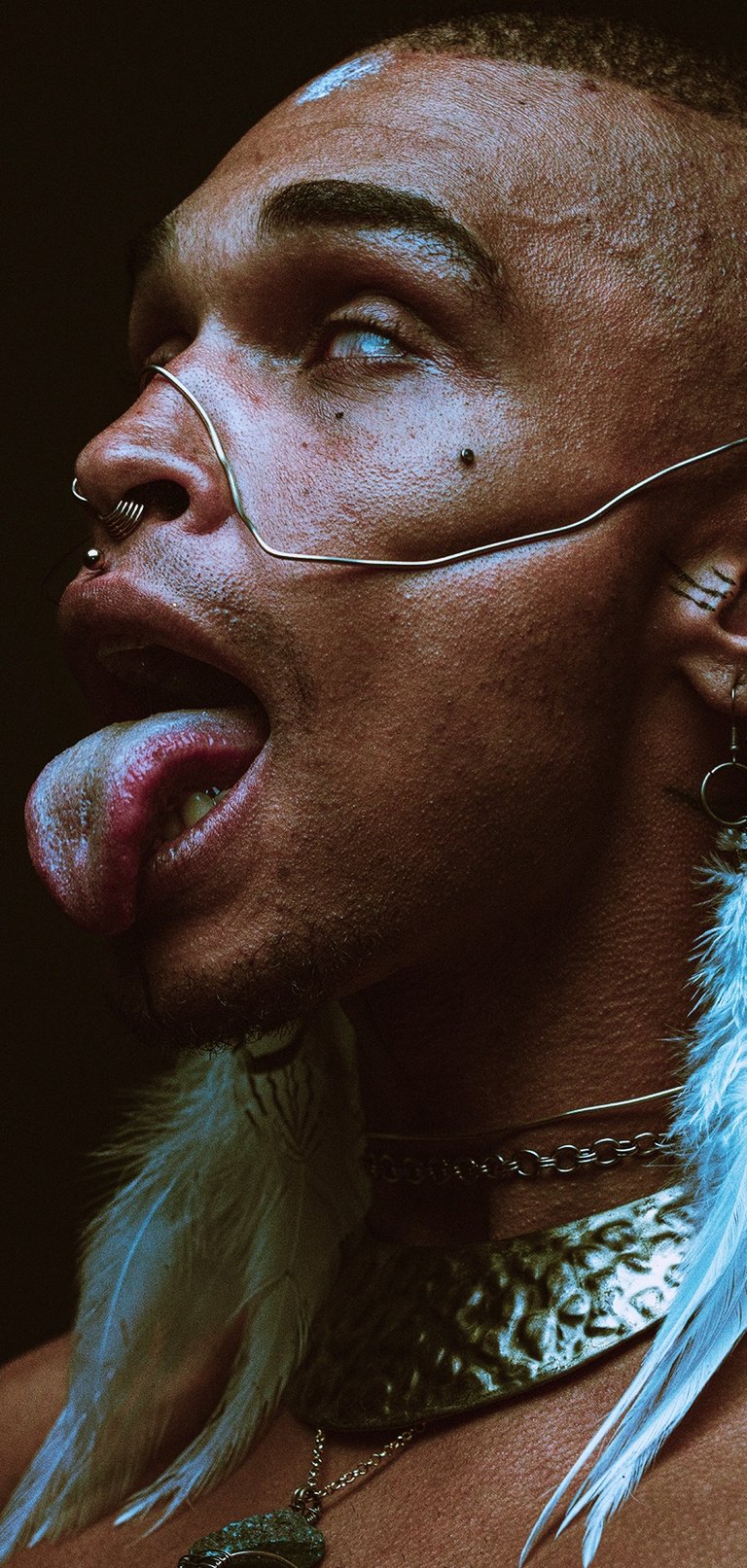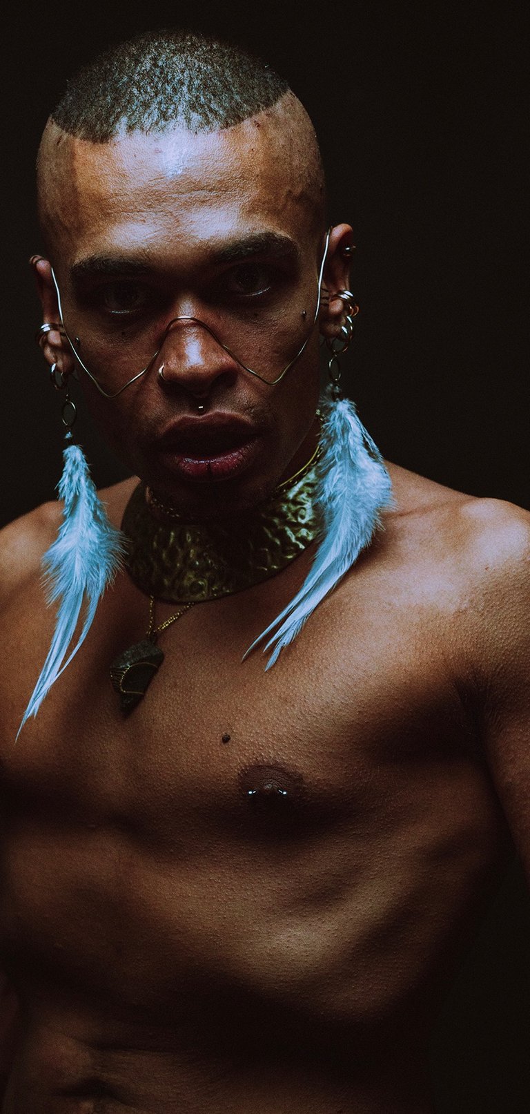 The feathers and accessories recall ritualistic elements, while the use of shadow and light sculpts the body and face, creating an almost sculptural effect that celebrates the beauty of imperfection and uniqueness. This project goes beyond mere documentation, transforming the subjects into contemporary icons of a cultural identity that resists and evolves, inspiring reflections on memory, dignity, and the beauty of a land rich in stories.